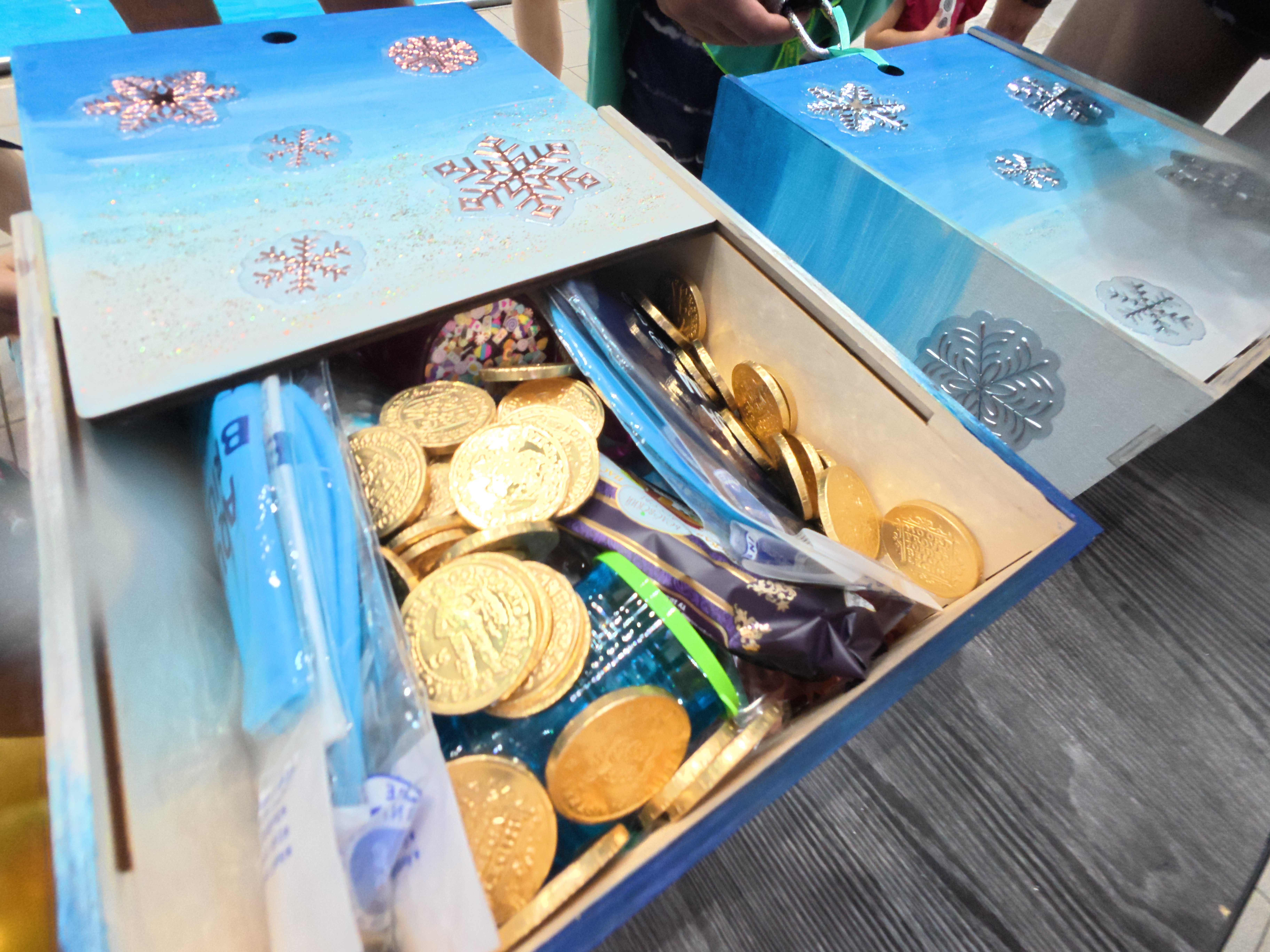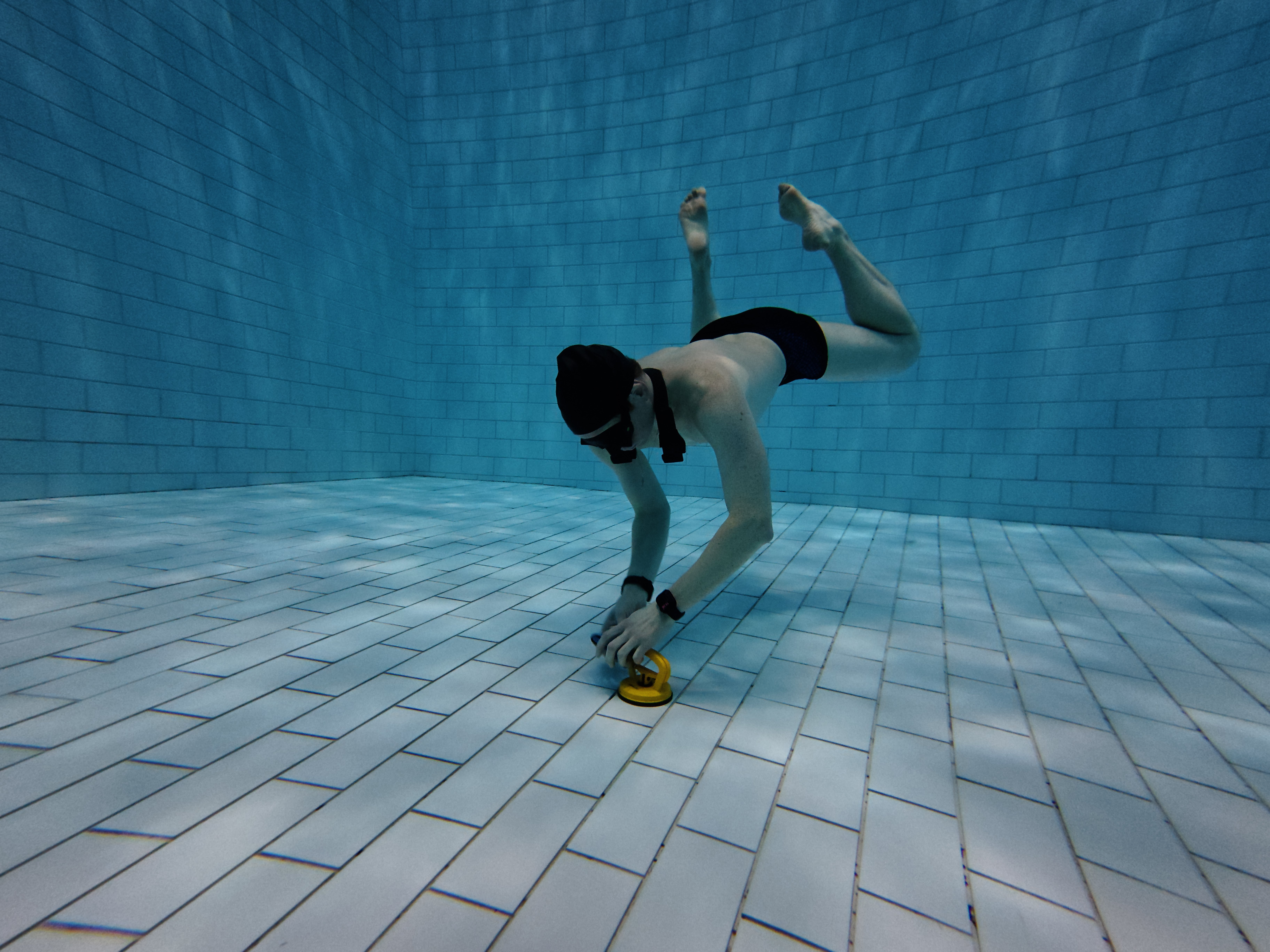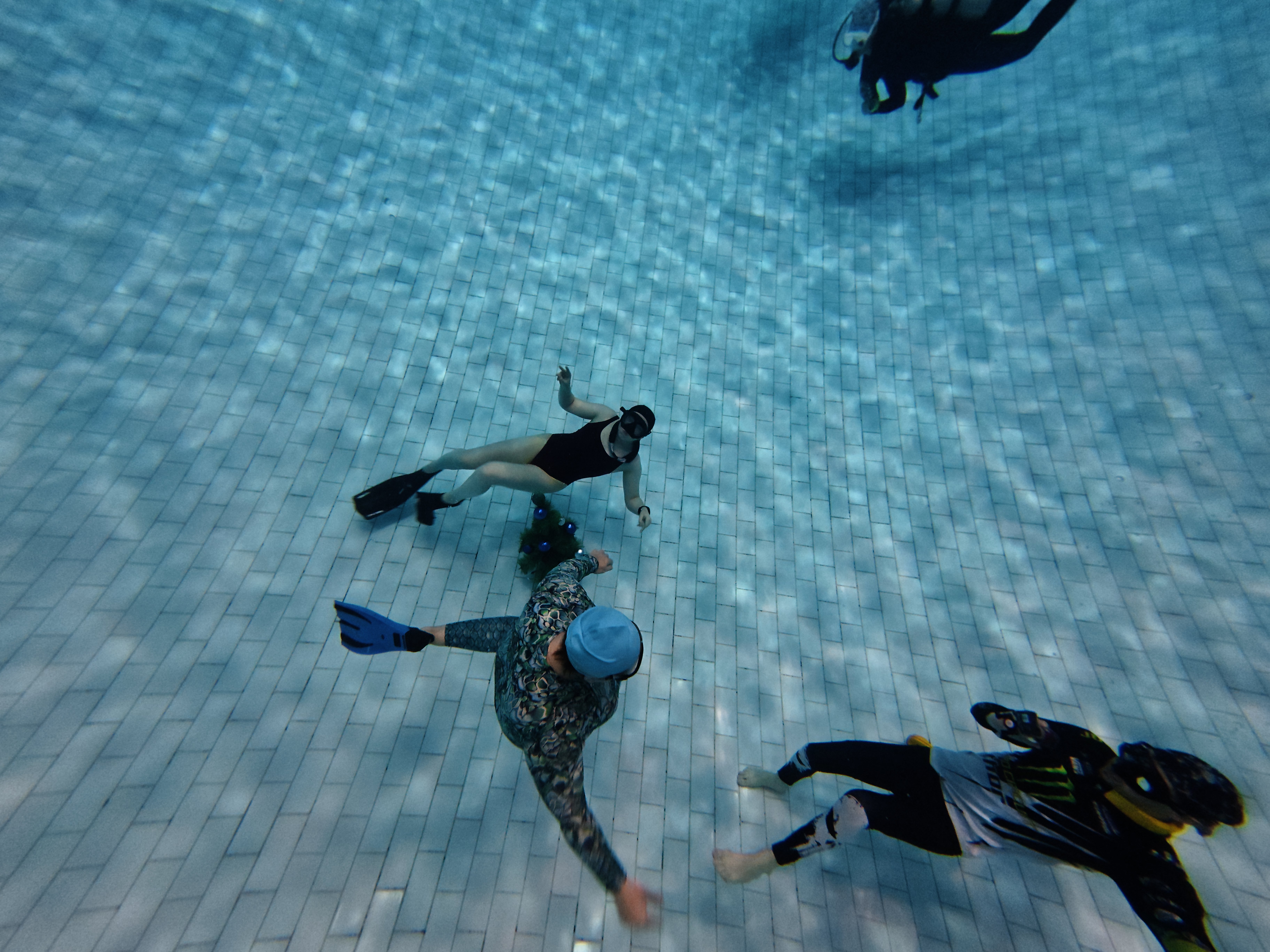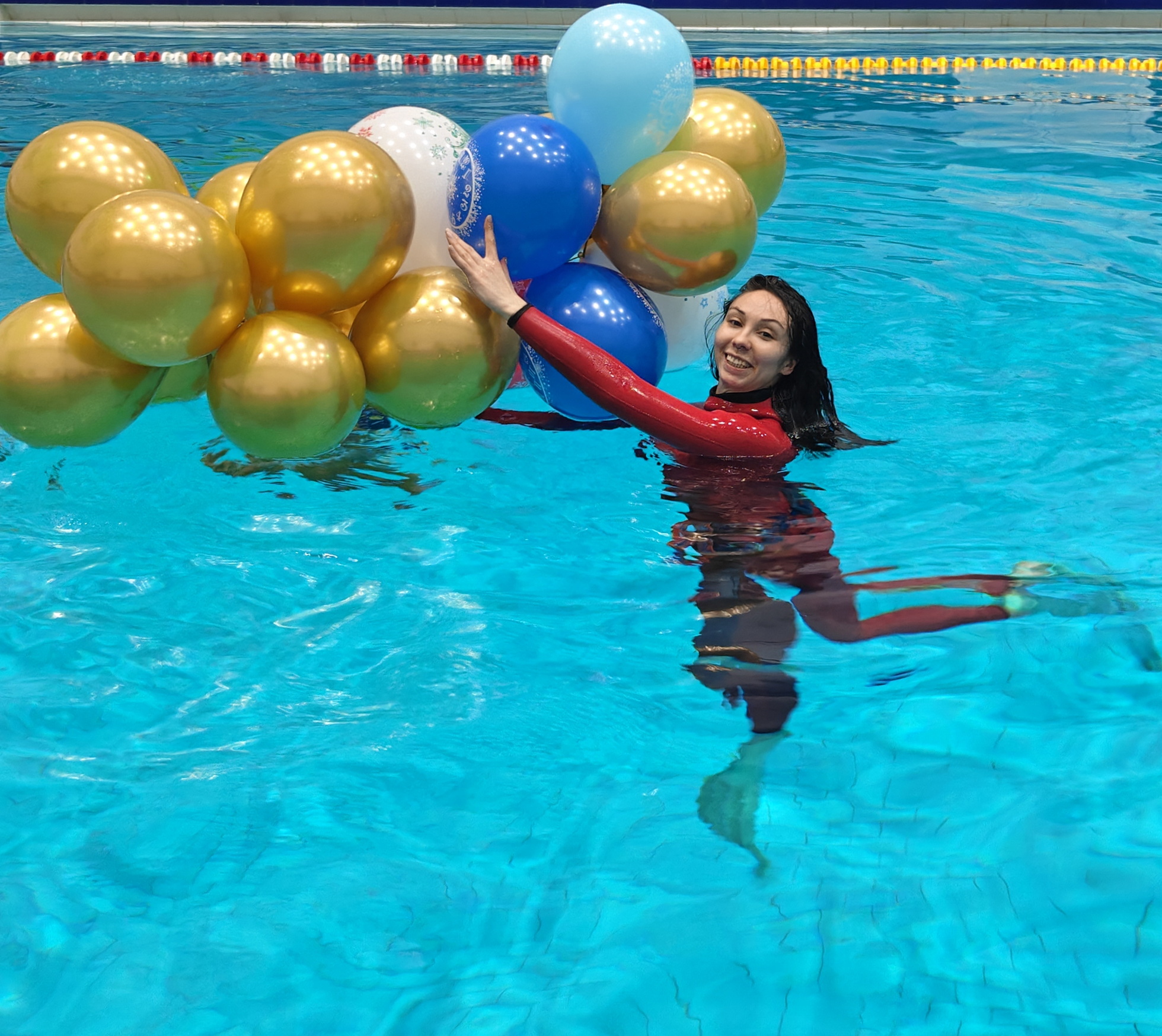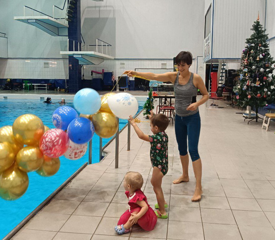 Команды, выполняя весёлые и порой сложные задания, добыли со дна бассейна ключи и открыли ими ящики с подарками. Дети и взрослые работали слаженно и обе команды выступили отлично! Паздник завершился викториной с розыгрышем главного приза - крутой фридайверской маски Aquasphere.