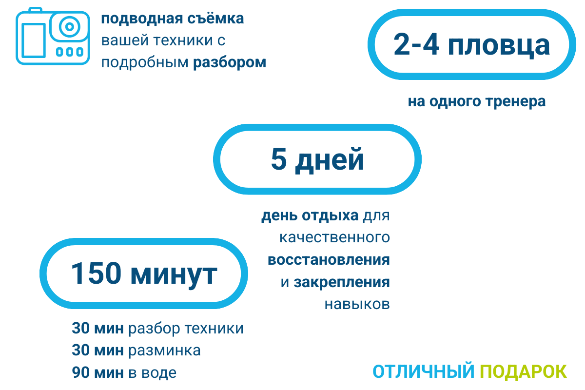 Любой уровень плавания — от новичка до продвинутого.